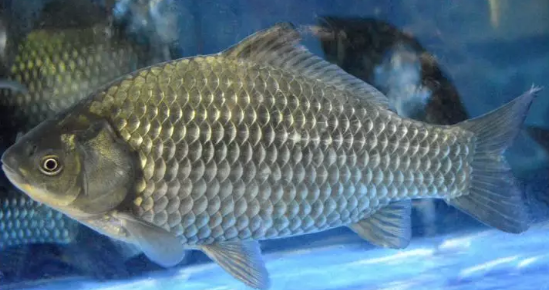 9、鲤鱼:鲤鱼是世界上最早养殖的鱼类。有白鲤、黑鲤、红鲤、锦鲤等品种,以黄河鲤鱼最为著名。常栖息于江河、湖泊、水库和池沼的水草丛生及松软泥底层。杂食性鱼类,在鱼苗阶段主要吃浮游动物。成鱼的主要食物种类的螺蛳、黄蚬、幼蚌、摇蚊幼虫、水蚯蚓、小鱼虾等,还吃食各种水草、草根、植物果实及植物腐屑等。